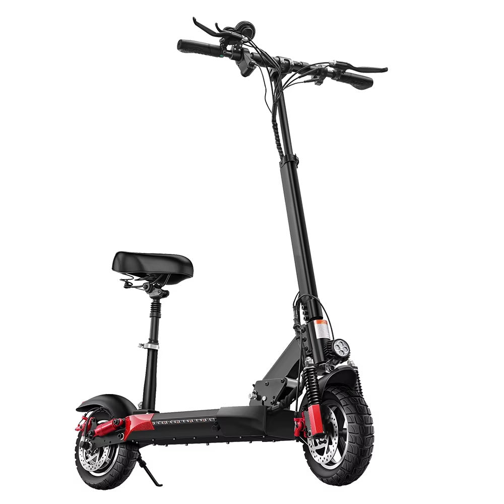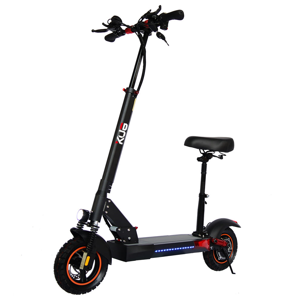 - Ausgestattet mit robusten 10-Zoll-Reifen, die für verschiedene Untergründe entwickelt wurden – ob Strasse, Schotterweg, Bergpfad oder schlammiger Untergrund. Dieser Scooter sorgt dank seiner Reifen sowie der Front- und Heckfederung für Stabilität und Fahrkomfort.
